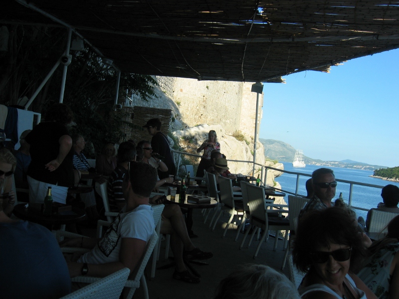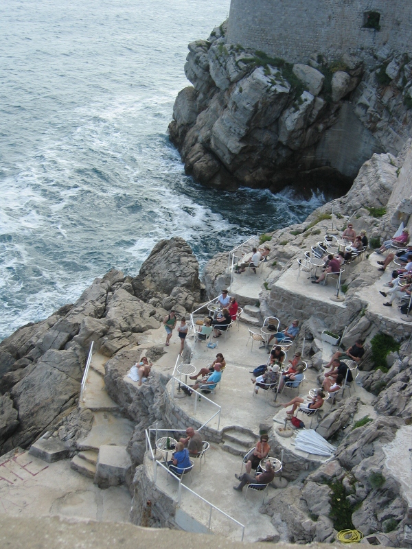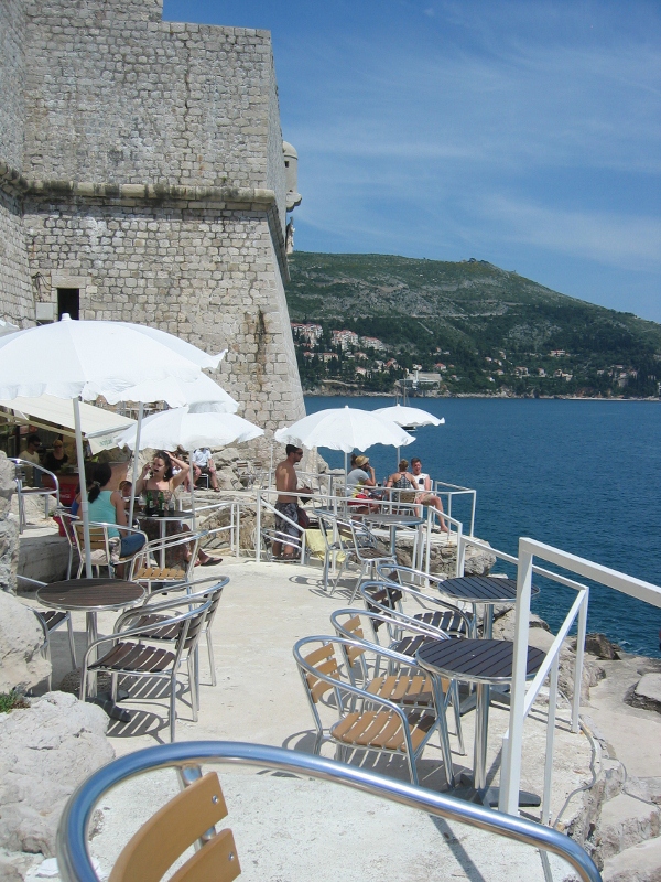 I paid 38 kuna for a really bad glass of red wine, served in plastic, surrounded by cruise ship people from England or Australia or something, complaining about the plastic glass (I was too, she says, blushing) and the lack of public toilets in Dubrovnik.  Now, I can see how someone who maybe just got to Croatia might think this place is pretty cool.  But I just spent time in HVAR where the views kick the ass of the one here.  Seriously.