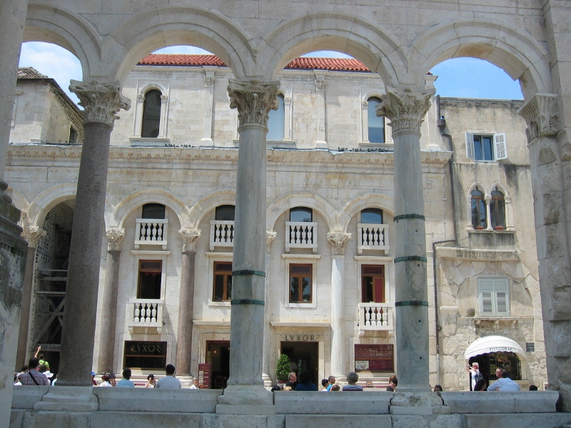 What did I love about Split?  Let’s see… part of the city is built INSIDE a Roman palace.  And all around that Roman palace are other buildings from every possible century.  There are layers upon layers upon layers. Check out the Roman columns of the palace next to a Venetian building right next to it: