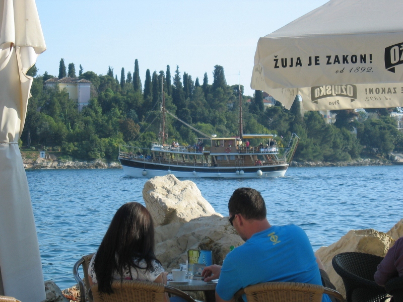 Don’t ask me (Ms. “Book the show, but don’t book the dinner”) why I decided to buy a ticket for a 6.5 hour boat ride with a fish picnic on board.  I guess I just thought I had better do something besides work in my apartment, hang out at a perch on the sea, or sit in cafes drinking wine.  So when I walked by the girl selling the tickets for the boat, I already had in my mind that I would go the next day.  She gave me a 30 kuna discount without me even asking.  So it was only 220 kuna for the all day trip.  I knew that there was no way lunch would be too spectacular for that price.  But how bad could it be?