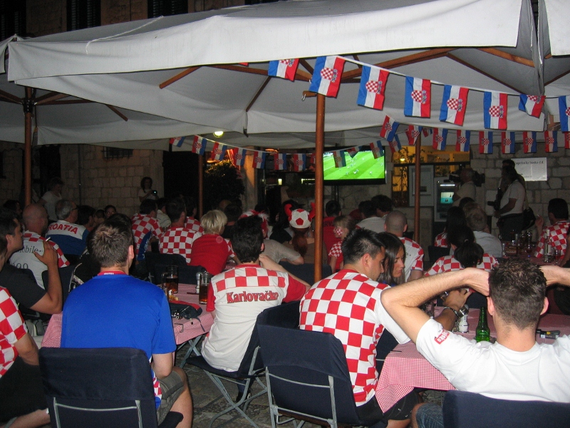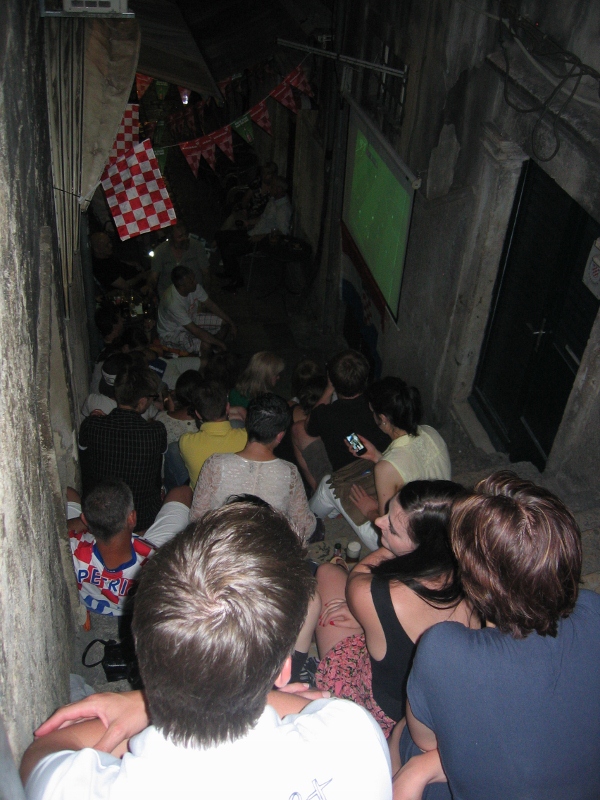 It was a lovely warm night.  Many of the tourists are gone, the ones are still around have dinner and drink and listen to music and walk up and down the Stradun with ice cream cones.  At night, Dubrovnik GLOWS.  It is so pretty.  It is a totally different place than during the day, and you see so much more, because there are no people there to get in the way.  And Croatia won, which was pretty awesome, because the locals were all really excited.  The town had, for the most part, got rid of all the visitors and was filled with happy local people.  I am glad I got to be a part of that.