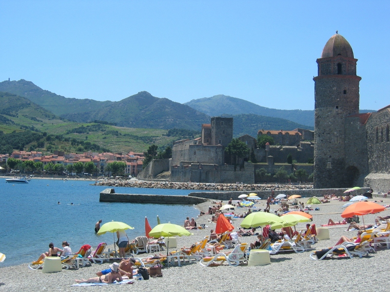 Collioure is wonderful.  On the Mediterranean, close to the Spanish border, a tourist destination but still a real town where real people live and they have real markets with really killer food.  I loved it there. There is a fortified castle right in the center of town, surrounded by clean streets full of cafes and restaurants.